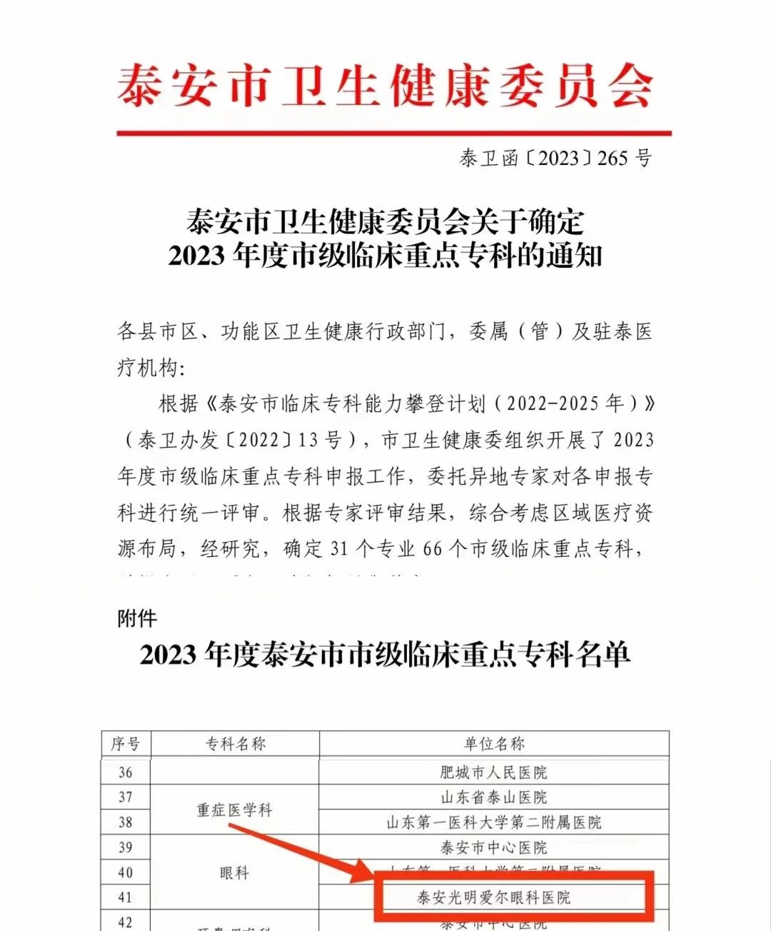 喜報(bào)!泰安光明愛(ài)爾眼科醫(yī)院評(píng)審為市級(jí)臨床重點(diǎn)專科!