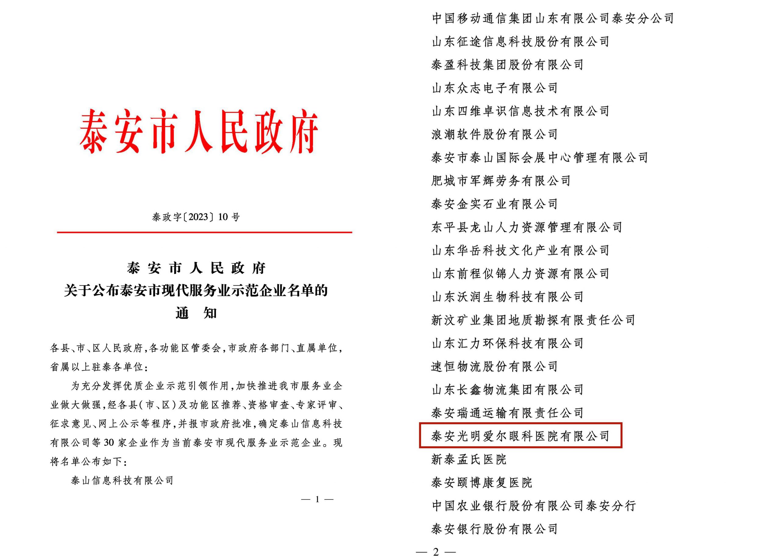 喜報(bào)!泰安光明愛爾眼科醫(yī)院獲評(píng)“泰安市現(xiàn)代服務(wù)業(yè)示范企業(yè)”